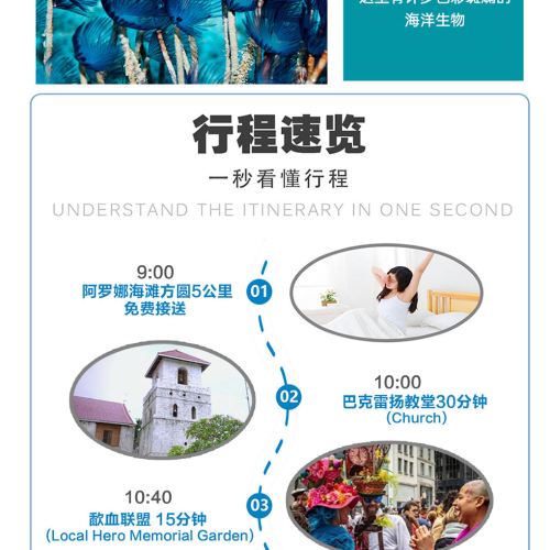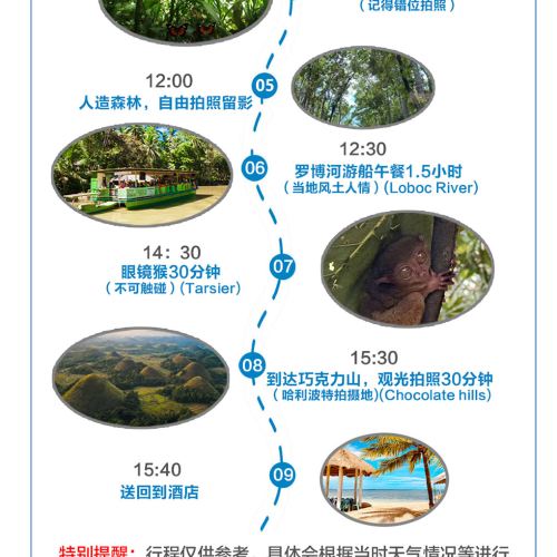 1. Free pick-up & drop-off service within a 5km radius of Alona Beach (if outside the pick-up & drop-off area, please proceed to the designated meeting point on your own. Due to scattered hotel locations, drivers may require additional time for transfers - your patience is appreciated).